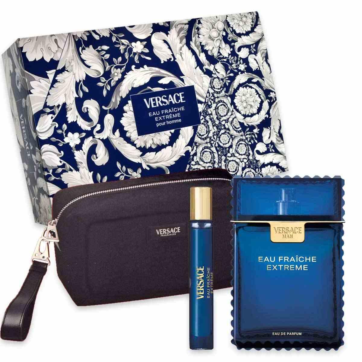 Indulge in luxury with the Versace Eau Fraiche Extreme Eau De Parfum. This set includes a 100ml/3.4 fl. oz. spray, a 10ml/0.3 fl. oz. travel spray, and an exclusive Versace trousse, perfect for gifting or personal pampering. Experience iconic, sparkling fragrances in a lavish package.